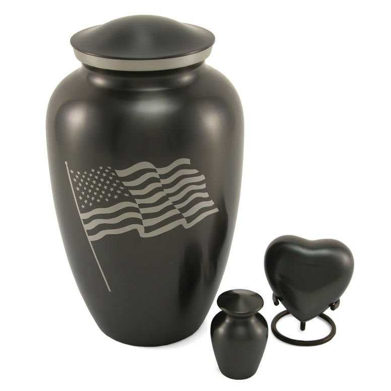 The Classic Flag brings the Classic urn shape in a slate color with a waving American Flag. This urn is perfect for those who want a beautiful memorial with countless personalization options.