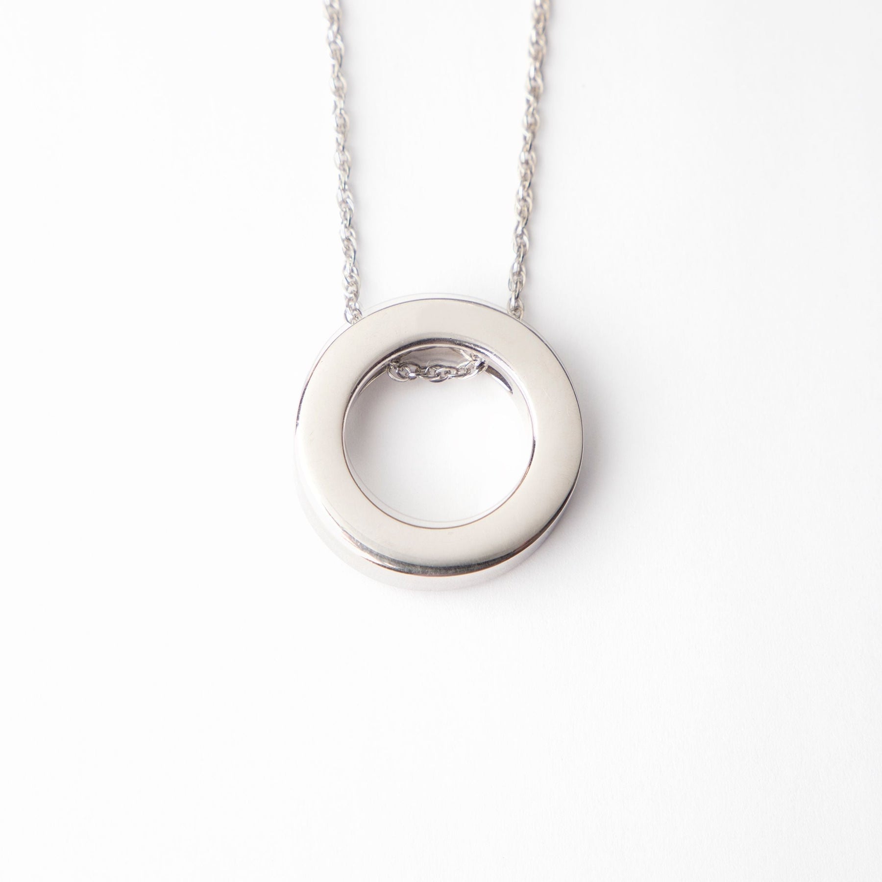 The Circle of Life Cremation Pendant is made from 925 sterling silver and is handcrafted with care by our artisan jewelers. This circular pendant is great for both men and women and can be filled with a small portion of your loved one's ashes.  This elegant cremation piece comes with an 18" sterling silver rope chain and can be paired with beautiful interchangeable charms that express your loved one.