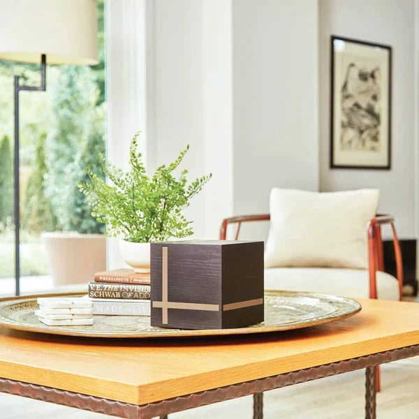 The striking Bristol is an eye-catching urn that comes with either a natural bamboo or gloss grey accent.  This sleek urn matches modern decor in the home and is a beautiful way to honor a loved one and has a discreet opening that locks on the bottom of the urn to fill.