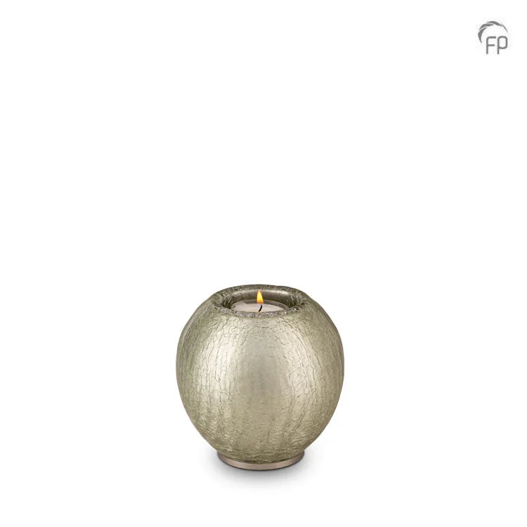 The Cherished Crystal urn is handcrafted by skilled artisans in a small town in the Czech Republic - an area known for high quality crystal making dating back thousands of years. This exclusive piece of art is made into a globe-like shape and has a "cracked" crystal appearance giving it character and adding to its beauty.  It comes in two colors, Emerald Grey and Cappuccino and in two sizes (a full size urn and a keepsake).  The matching keepsake has an area on top to place a candle.