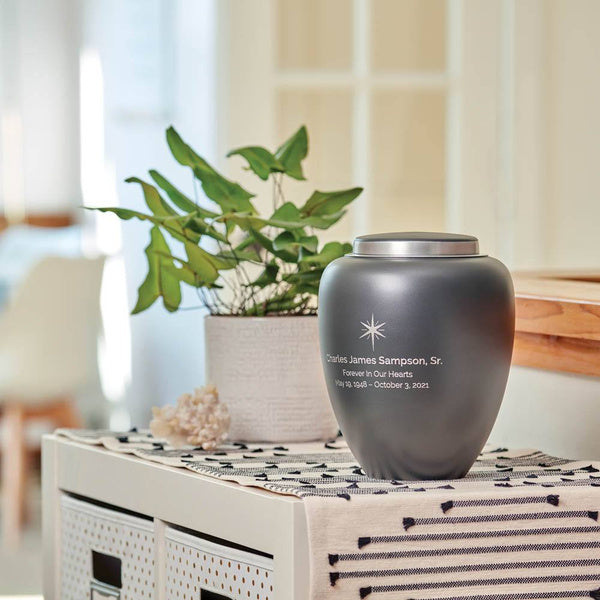 The Emerson Collection offers a contemporary look that will fit into any home décor style. Display this full size urn with its rich matte finish at home in a special place where you can reflect on and remember your loved one. A family can make this urn even more special with custom personalization (engraves a beautiful silver color).