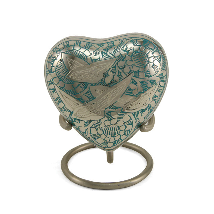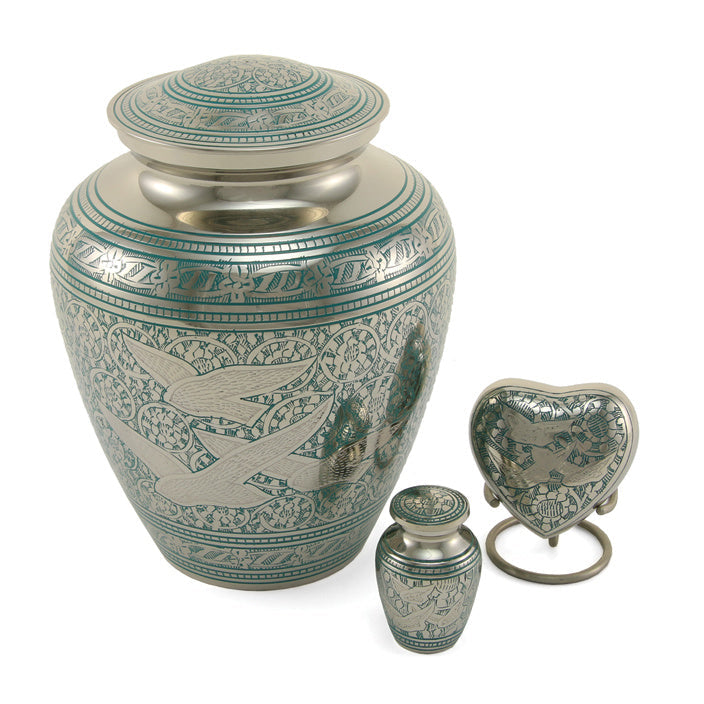 Majestic birds are often considered a link between Heaven and earth. Celebrate your loved one’s eternal life with this brass cremation urn from our Elite Going Home Collection. Hand-engraved with a contrasting bird design on a polished nickel-plated finish.