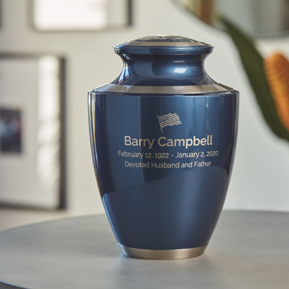 Our Trinity series combines a modern shape with a rich finish and accents to create a beautiful memorial. Ample engraving space makes this urn a beautiful canvas to tell a loved one's story.